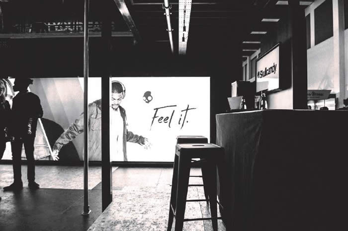DPI helped Checkland Kindleysides to successfully achieve their mission to push beyond the boundaries of electronics product show standard norms at the stand. Richard Dunkin, Production Director at Checkland Kindleysides said: “Building a lightbox display is deceptively simple, however, DPI understood our focus, were incredibly exacting and provided top notch support throughout the build. This helped us to ensure the IFA stand successfully reflected Skullcandy’s cultural origins combined with an immersive audio experience.” Skullcandy is an American company based in Park City, Utah. They supply audio accessories such as headphones, earphones, hands free devices, audio backpacks, MP3 players, and other consumer products.