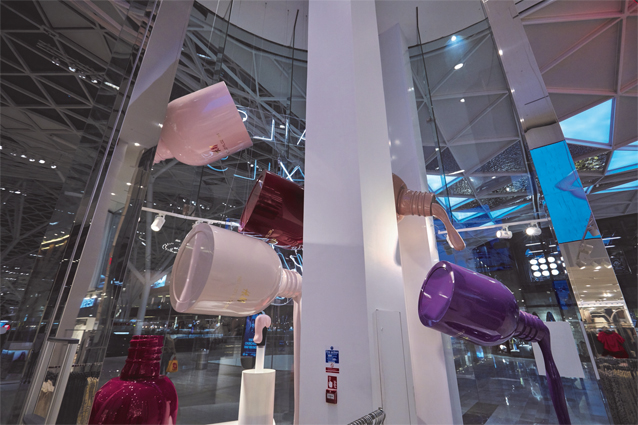 To help promote the launch of the new H&M Nail Bar and nail polish range, Propability produced a striking and colourful window display featuring oversized nail polish bottles, drips and splashes.
