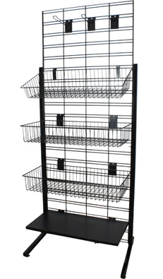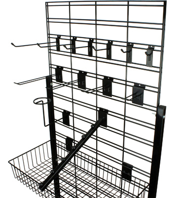KAS Shopfittings are now holding Black SlatGrid system in stock. Popular in the USA, SlatGrid wirepanels can be used with most slatwall fittings as well as many grid panel fittings. 'Our black slatgrid will appeal to those customers for whom the usual chrome finish is unacceptable, either from a branding or environmental impact standpoint. It will also suit those who find the smaller range of grid fittings too restrictive.' says KAS MD Steve Brandon. Panels come in 4 different sizes and can be wall-mounted or floor-standing on legs. There is also a range of black slatwall fittings to compliment. Great for pop-ups, exhibitions & trade shows, the black finish will also suit retailers looking for a versatile urban or industrial look.
