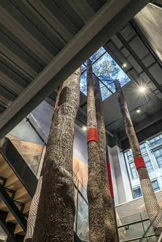 Whether it’s climbing, skiing, mountaineering or another extreme sport that is your passion, the last store that we review will satisfy every adrenalin junkie’s needs. From the enormous LED screen in the window to the overhead band complete with multiple skylights instore and the magnificent group of giant tree trunks in the stairwell, it delivers an epic adventure within its four walls.